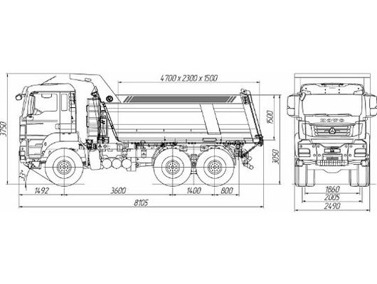 Материал кузова износостойкая сталь K450, пол 7 мм, борта 6 мм
